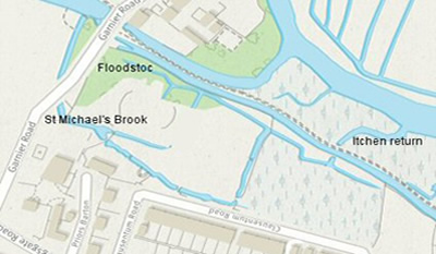 Water has been the most influential factor in the development of the site over the centuries as town drainage, water meadow and mill workings have changed nature's original scheme. Now two legacy streams (St Michael's Brook on the west and Floodstoc River on the east) convey high quality chalk stream water into the upper site. These streams converge halfway down the site and then flow out under Lockburn Stream and Keat's path into the River Itchen.