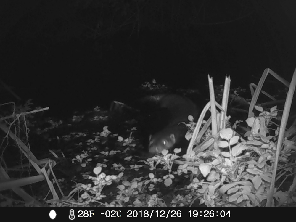 The most notable species listed is the otter which passes through the Fen and can be detected by finding otter spraint and with an infra-red camera trap, which provided this picture on Boxing Day 2018: